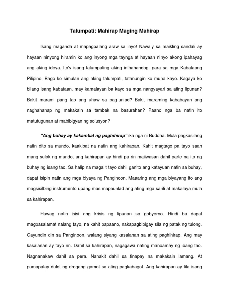 Talumpati Tungkol Sa Kahirapan Pdf