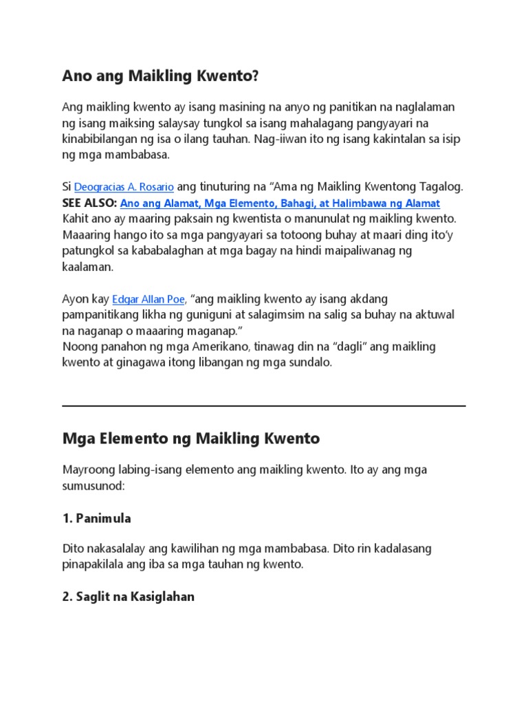 Halimbawa Ng Di Pormal Na Sanaysay Maikling Kwento