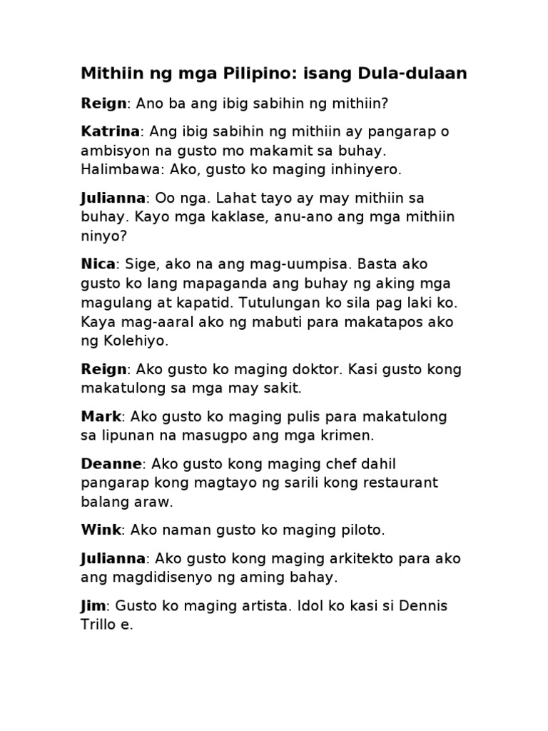 Halimbawa ng maikling dulang pilipino. Example of a melodrama game with script. Halimbawa Ng Katitkan Ng Pulong October 2020 0. Limang Uri Ng Dulang Pangtanghalan December 2019 73.