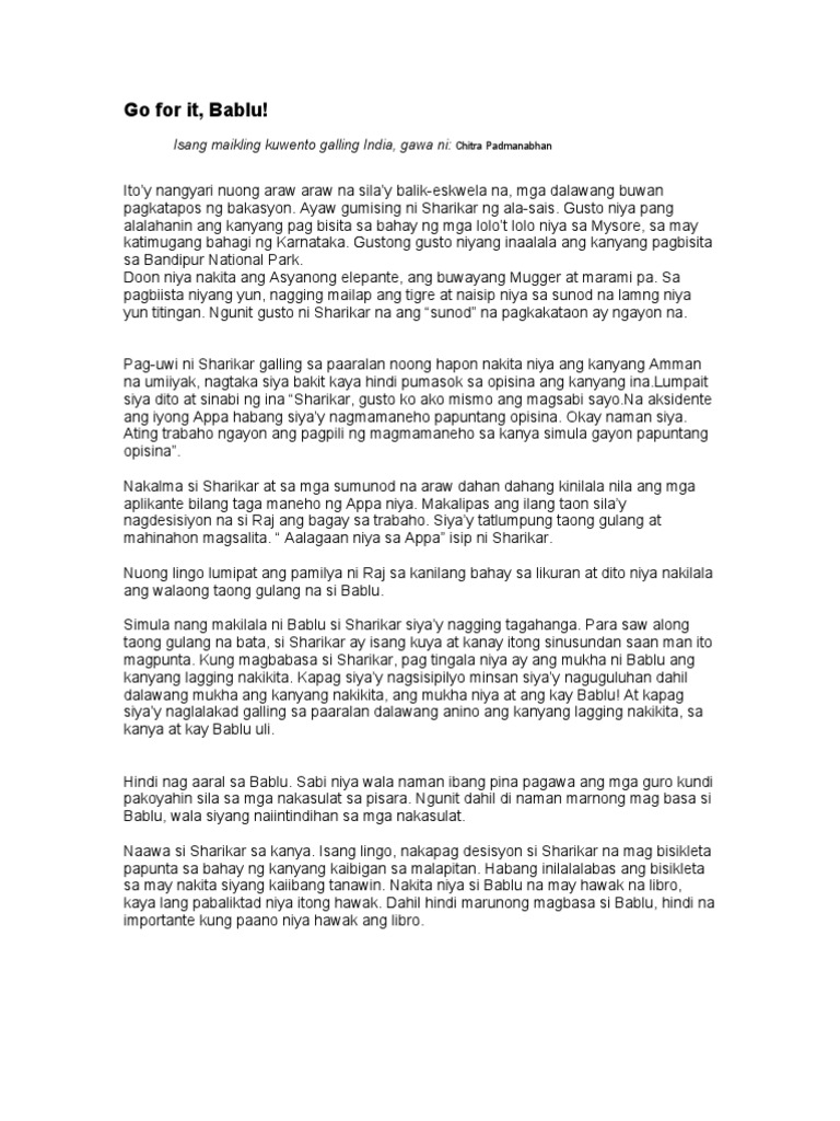 Maikling kwento mula sa india. Mga Bahagi ng Maikling Kwento Ang maikling kwento ay may tatlong bahagi. Hindi kita iiwanan dito sa ilog. Isinalin ni aurora e batnag.